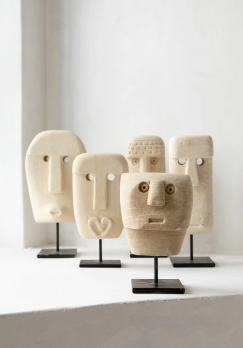 Maisons Du Monde Statuettes Et Figurines Statuette Visage à Imbriquer En Ciment Beige H19