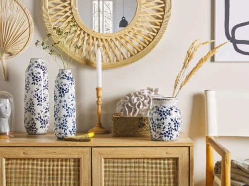 Beliani Statuettes Et Figurines Figurine Décorative En Bois Clair 34 Cm