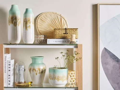 Beliani Statuettes Et Figurines Statuette Décorative Dorée Sur Socle Noir 34 Cm