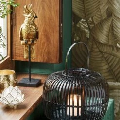 Maisons Du Monde Bustes Et Statues Statue Cacatoès Doré Sur Socle En Métal Noir H45