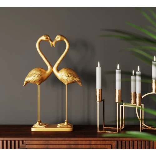 Maisons Du Monde Statuettes Et Figurines Statuette Paon Doré, Plumes Et Perchoir Noirs