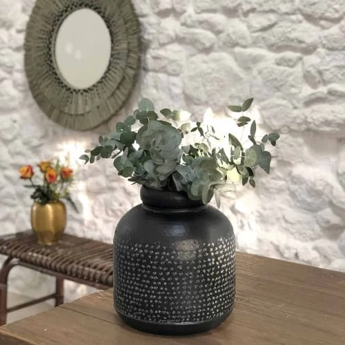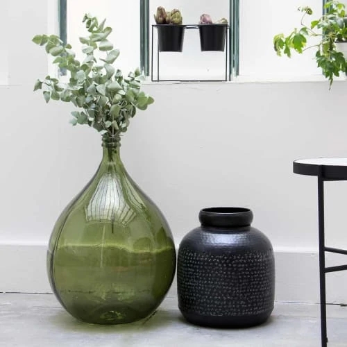 Donnez du cachet à votre déco avec cette bonbonne noire de la collection Jaya signée Passage Vernet. En aluminium, on aime sa finition noire mate, et son motif gravé et blanchi, dans un esprit artisanal. Faite à la main en Inde, cette bonbonne est un très bel objet déco, qui magnifiera une console, un meuble, ou une pièce si vous la disposez au sol. Agrémentée de branchages, de fleurs ou tel quel, cet objet saura donnez le ton à votre intérieur ! Découvrez toute la collection Jaya