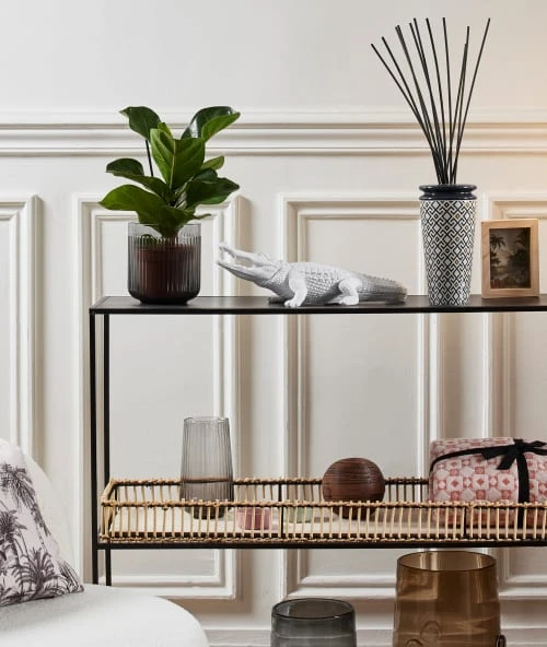 Le crocodile décoratif en polyrésine blanche s’impose avec caractère et humour dans un intérieur contemporain, tout en vous laissant décliner son look atypique selon votre humeur. Au cœur du loft, son design sauvage va sans hésitation booster les lignes épurées et minimalistes. Idéale à mettre en scène dans un style bohème, la statuette crocodile blanche se prête aux idées déco créatives : un faux crocodile blanc dans la véranda à proximité d’un agencement de végétaux ; dans une chambre d’enfant, une figurine crocodile en résine composite côtoyant un trophée éléphant blanc ; sur la table basse du salon, en sculpture animalière moderne et tendance, un crocodile décoratif tout près des coussins jungle ou Palm Tree du canapé.