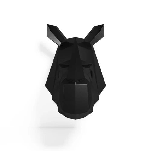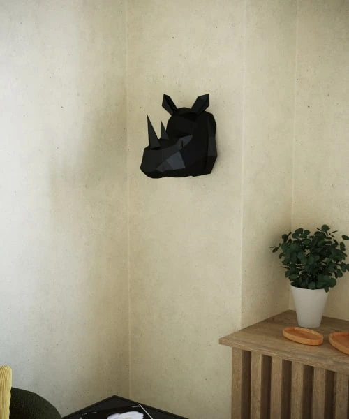 Accroche murale rhinocéros noir en origami, effet esthétique infaillible