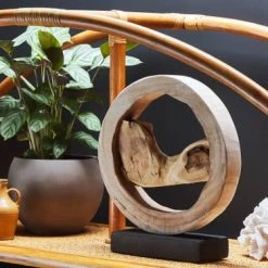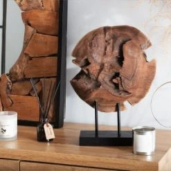 Beliani Statuettes Et Figurines Figurine Décorative En Bois Clair 34 Cm