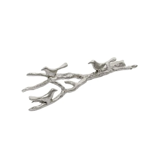 Sculpture en aluminium de trois oiseaux posés sur une branche. C’est l’objet de décoration idéal pour parfaire la décoration d’un belle table de fête. Sa brillance naturelle apporte un côte élégant à votre intérieur.