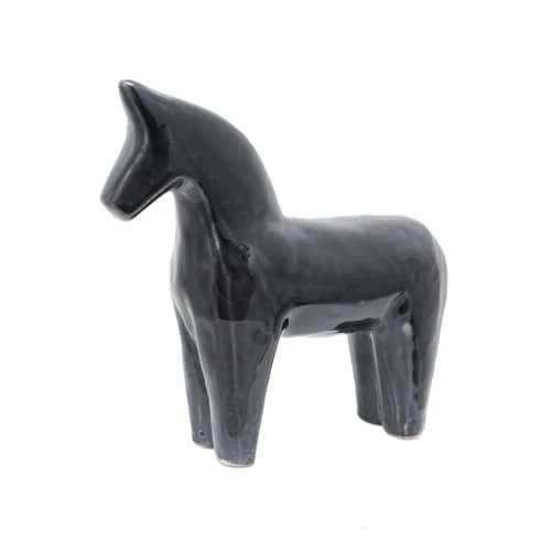 Statuette de cheval en grès émaillé. Objet décoratifau style ethniqueet élégant idéal pour toutes les pièces de votre intérieur. Existe en trois versions différentes relief striés, grès lisse et grès poli.