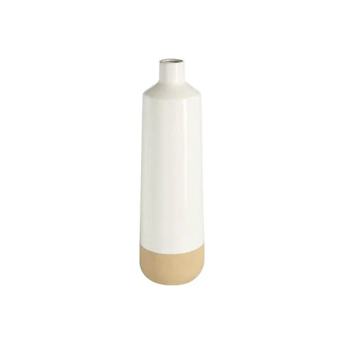 Grand vase allongé à col finMELEN blanc et terracotta à la base.Ce vase sobre et élégant est parfait pour une décoration éclairée et fera briller vos plus beaux bouquets et compositions florales grâce à son blanc éclatant. Son col resserré permet un excellent maintien des tiges fines, comme celles de lilas par exemple.